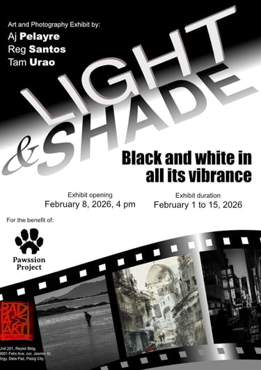 Badass buddies AJ, Reg, and Tam strip away the hues to reveal the emotion and soul behind their works in “Light & Shade” art and photography exhibit.