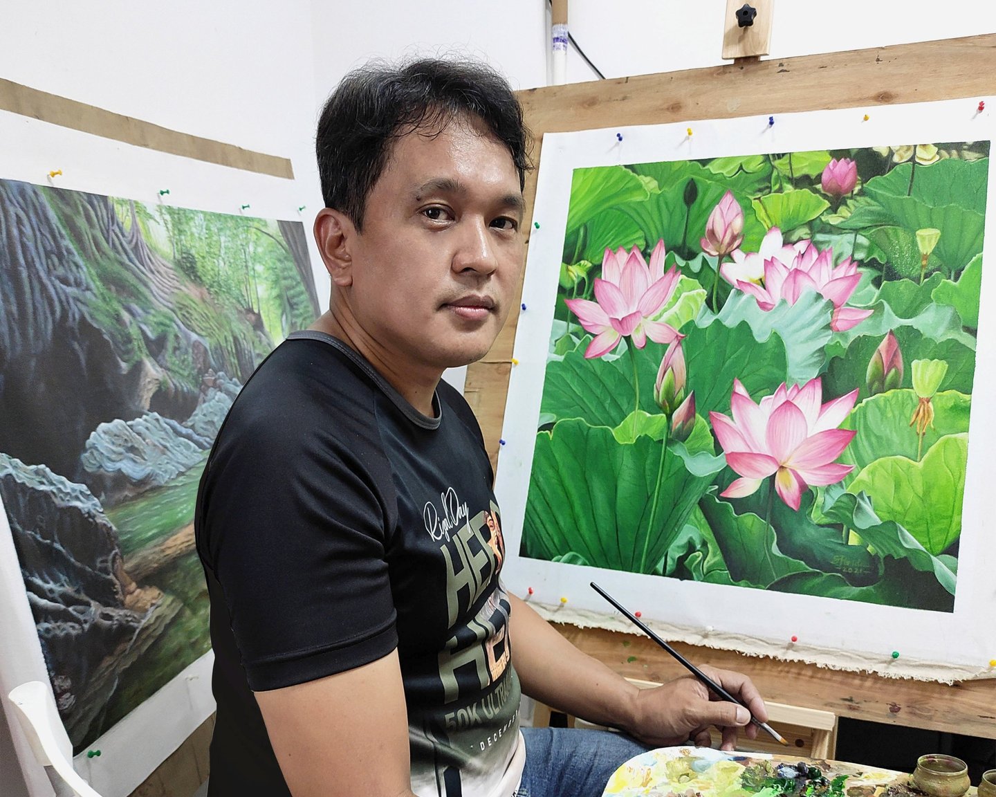 Deeply inspired by nature and his environment, Sonny renders realistic figures and nature-inspired works suffused with rich tones that lend them a striking appearance.