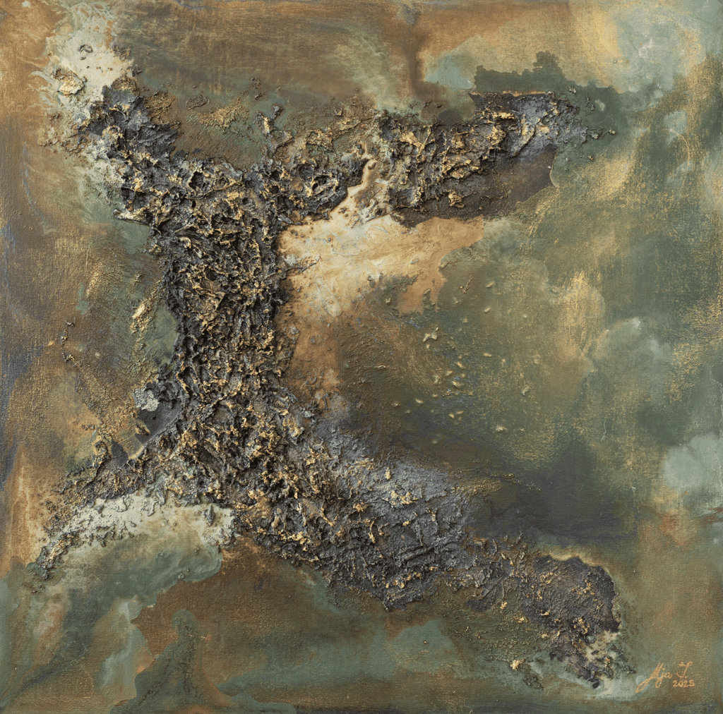 Mary Joy Ann Tuaño has a flair for visualizing the feminine nature, expressed in various themes and moods, subdued acrylic colors, and a variety of media in her art pieces. She describes herself as a continuous artistic experiment, testing textures, techniques and materials. For her, painting and cooking are essentially the same experience: the thrill of creation, reconnection with sentiment or nostalgia, and finally, consumption for enjoyment.